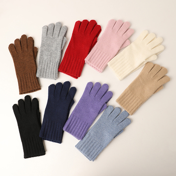 100% gants en laine, gants d'hiver pour femmes en plein air garder au chaud, conception de couleur unie des gants de doigt, cadeau pour l'amour